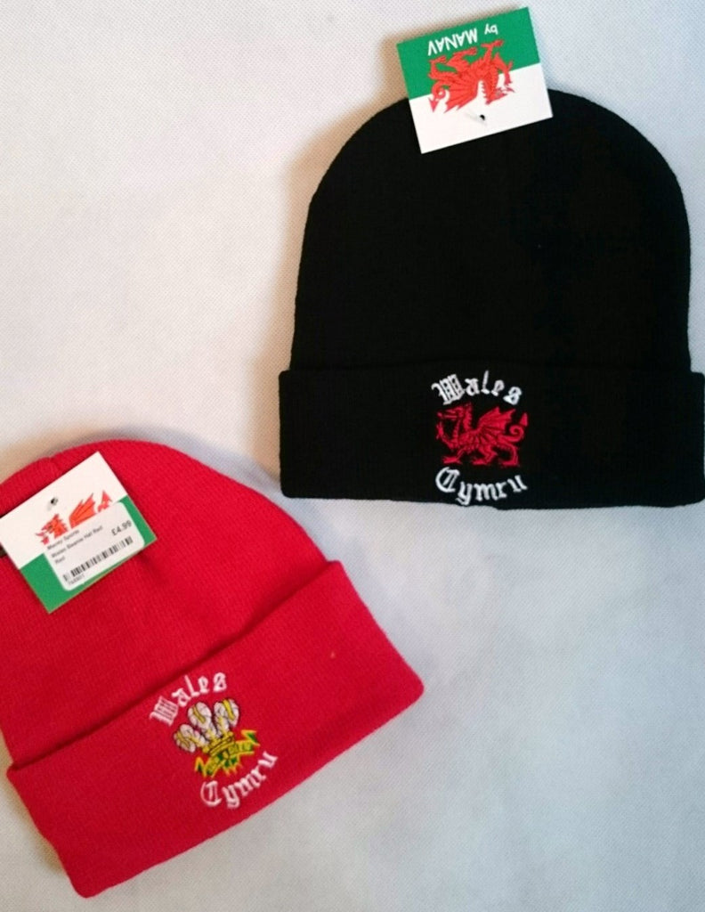 Welsh Dragon and wording embroidered on Black Hat.